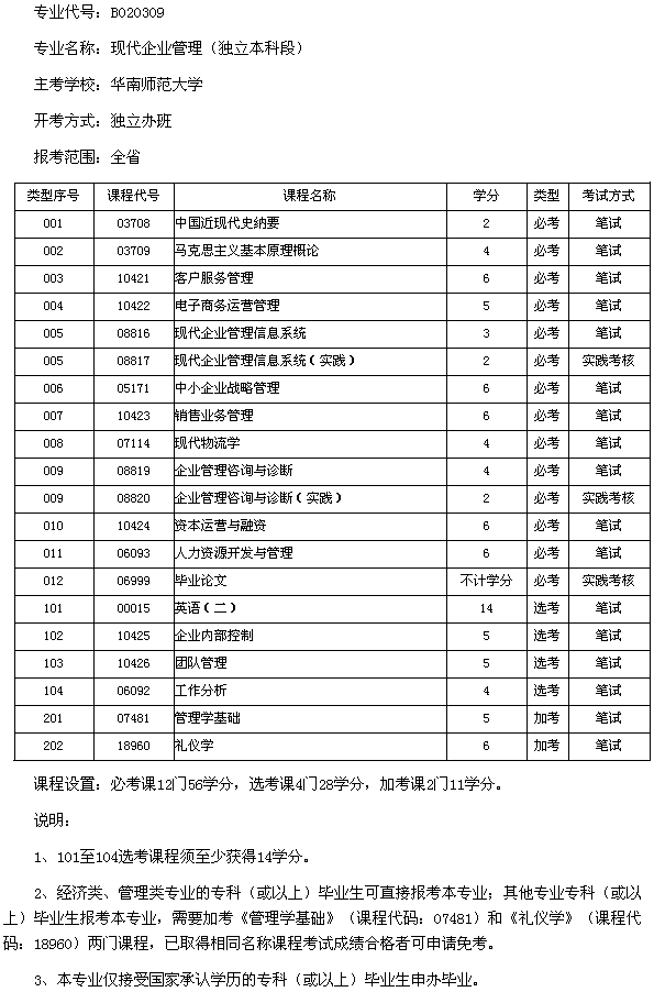 廣東2013年華南師范大學(xué)現(xiàn)代企業(yè)管理(本科)考試計劃