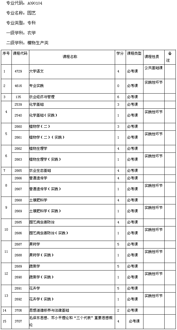 云南省2013年自考園藝(??疲┛荚囉?jì)劃
