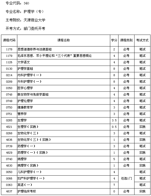 天津市2013年天津商業(yè)大學(xué)自考護(hù)理學(xué)(??疲┛荚囉?jì)劃