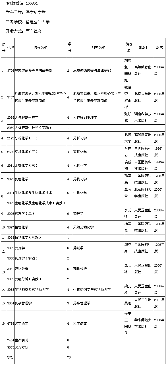 福建省2013年福建醫(yī)科大學自考藥學(??疲┛荚囉媱?/h1>