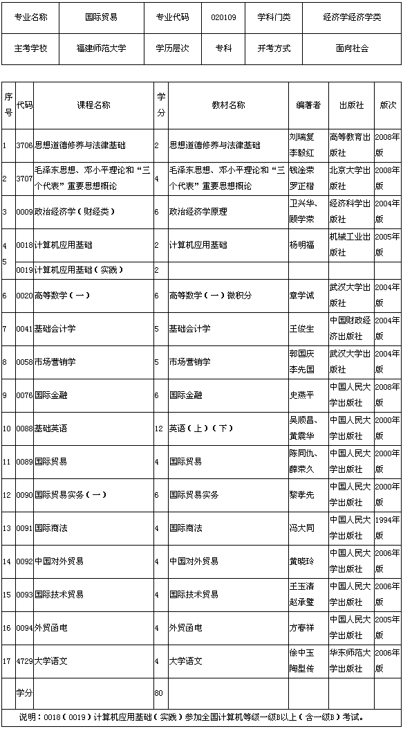 福建省2013年福建師范大學(xué)自考國(guó)際貿(mào)易(專(zhuān)科)考試計(jì)劃