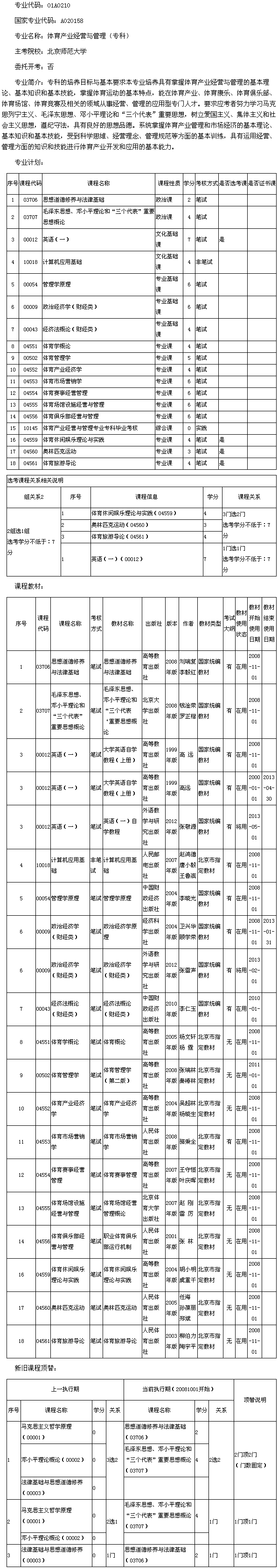 北京2013年北京師范大學(xué)自考體育產(chǎn)業(yè)經(jīng)營與管理(專科)考試計劃