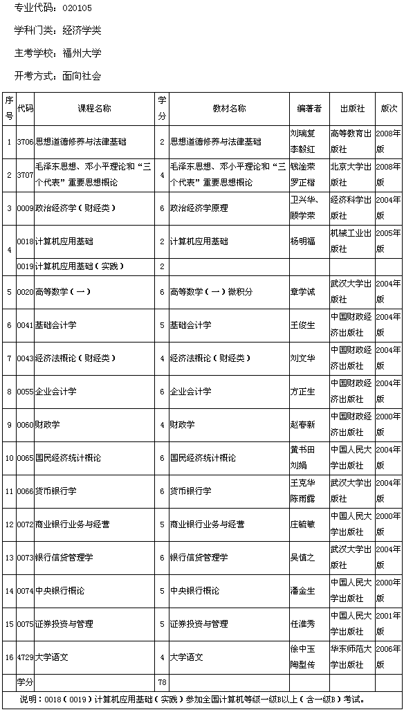 福建省2013年福州大學(xué)自考金融(專科)考試計劃