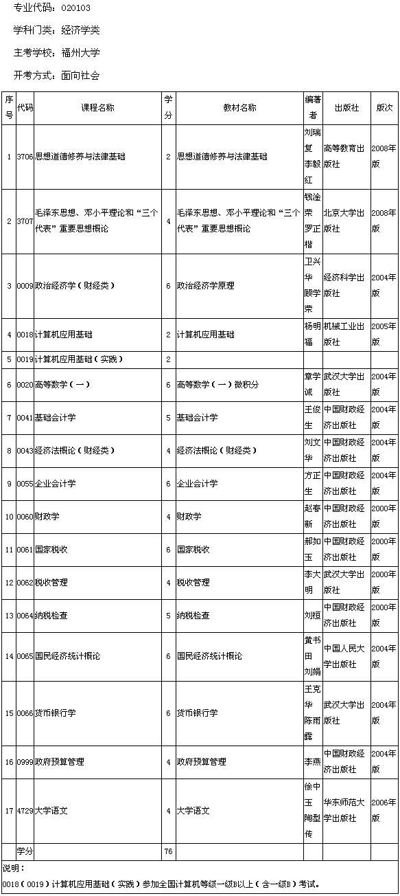 福建省2013年福州大學(xué)自考財(cái)稅(??疲┛荚囉?jì)劃