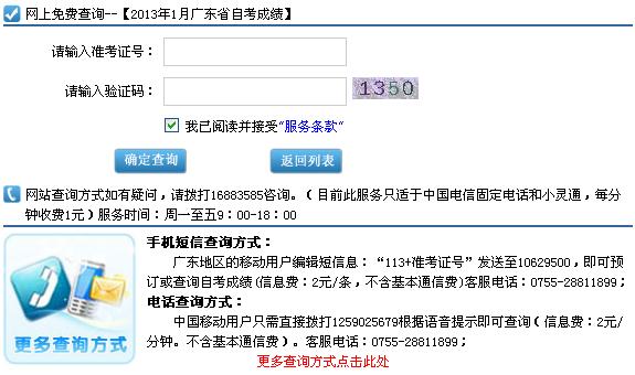 2013年1月廣東省自學(xué)考試成績已公布,考生可通過以下方式查詢: