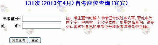 宜賓市2013年4月自考座位號查詢?nèi)肟?/h1>
