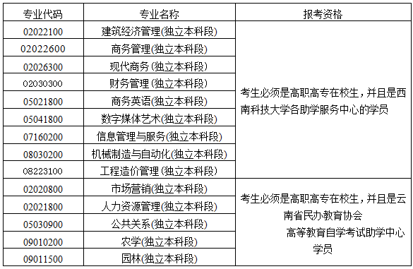 2、填寫報考課程時,考生最多只能選擇四門課程,同一時間只能選擇一門課程。另外,報考下列專業(yè)的考生,必須具備下列資格,否則不能取得畢業(yè)證書。