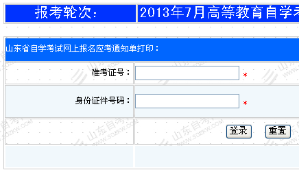 點擊進入>>山東省2013年7月自考通知單打印入口