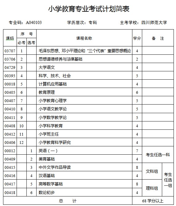 四川省2013年自考小學(xué)教育專(zhuān)業(yè)(專(zhuān)科)考試計(jì)劃