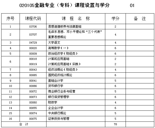 摘要 重慶市2013年自考金融專業(yè)(?疲┱n程設(shè)置與學(xué)分