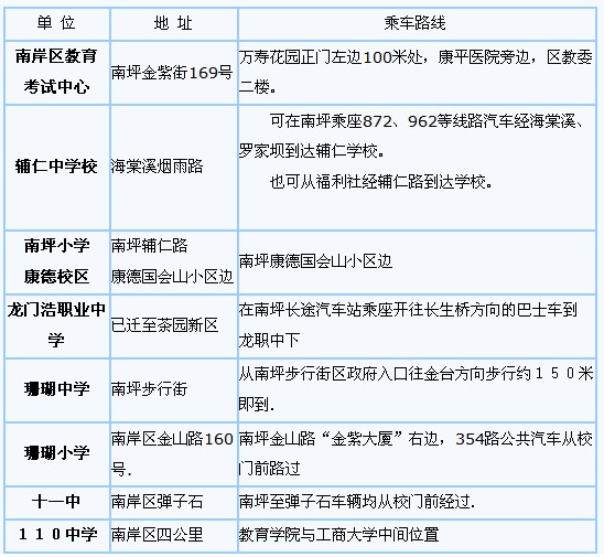 重慶南岸區(qū)2013年10月自考考點(diǎn)安排