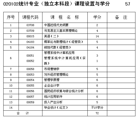 重慶市自考統(tǒng)計(jì)專業(yè)(獨(dú)立本科段)課程設(shè)置與學(xué)分