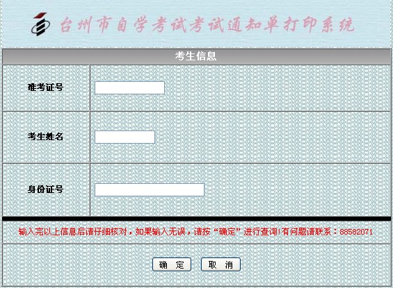 點擊進(jìn)入>>浙江臺州市2013年10月自考通知單打印入口
