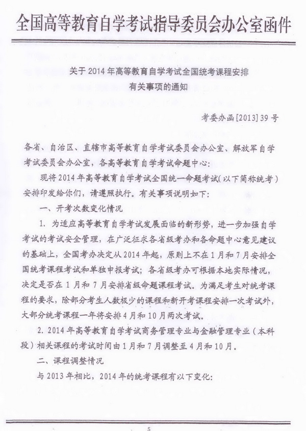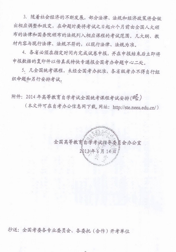 2014年自學(xué)考試全國(guó)統(tǒng)考課程安排有關(guān)事項(xiàng)的通知