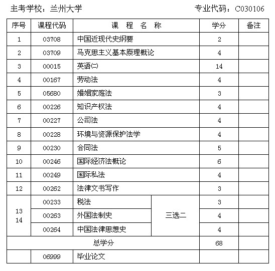 甘肅省自考法律專(zhuān)業(yè)(本科)課程設(shè)置與學(xué)分