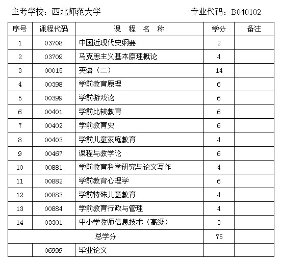 摘要 甘肅省自考學(xué)前教育專業(yè)(本科)課程設(shè)置與學(xué)分