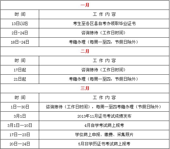 北京市2014年自考工作主要日程安排