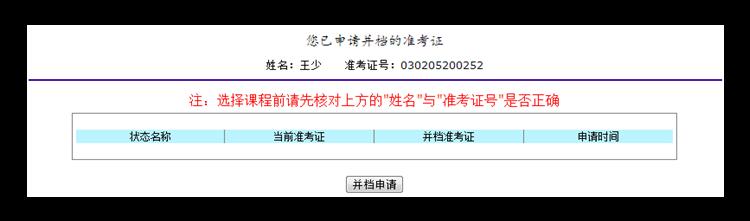 (2) 點(diǎn)擊“并檔申請(qǐng)”,顯示已申請(qǐng)狀況