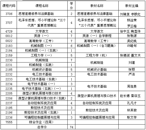 貴州省自學(xué)考試機電一體化工程專業(yè)(專科)考試計劃