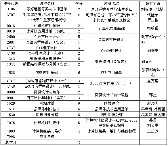 貴州省自學考試計算機應用技術(shù)專業(yè)(專科)考試計劃