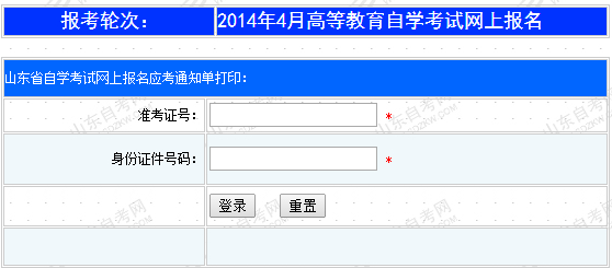 點擊進入>>山東省2014年4月自考通知單打印入口