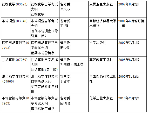 藥學(xué)與藥品營銷(專科)(100903)、藥學(xué)與藥品營銷(獨(dú)立本科段)(100904)收尾考試截止時(shí)間為2014年10月,考生需上網(wǎng)報(bào)考課程并支付考務(wù)費(fèi)?,F(xiàn)將2014年10月開考計(jì)劃、大綱教材公布如下:
