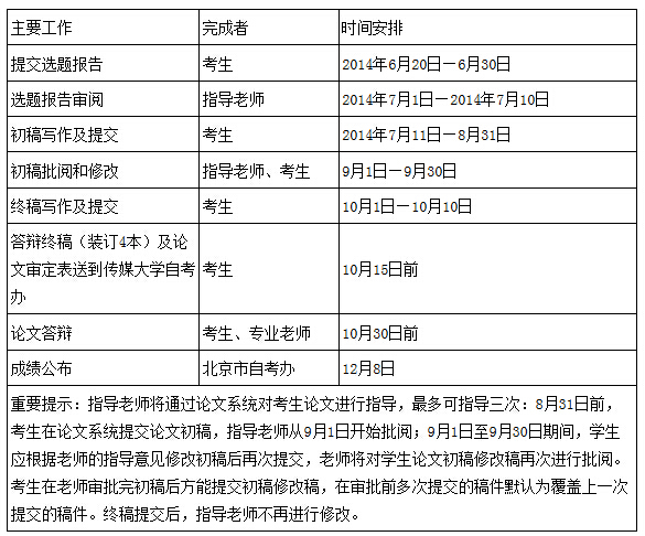 2014年下半年中國傳媒大學(xué)自學(xué)考試畢業(yè)論文撰寫程序