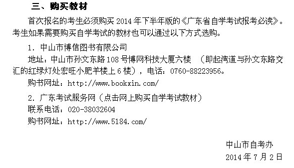 關(guān)于中山市2014年下半年高等教育自學(xué)考試新生報(bào)名及10月自學(xué)考試報(bào)考的通知