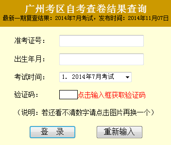 點擊進入>>廣東廣州市2014年7月自考查卷結果查詢入口