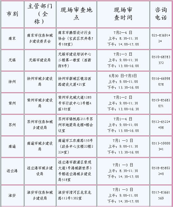 各報(bào)名點(diǎn)現(xiàn)場(chǎng)資格審查時(shí)間及地點(diǎn)詳見(jiàn)下表: