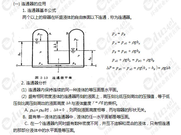 環(huán)保工程師:(流體力學)流體靜力學基本方程的應用(1)