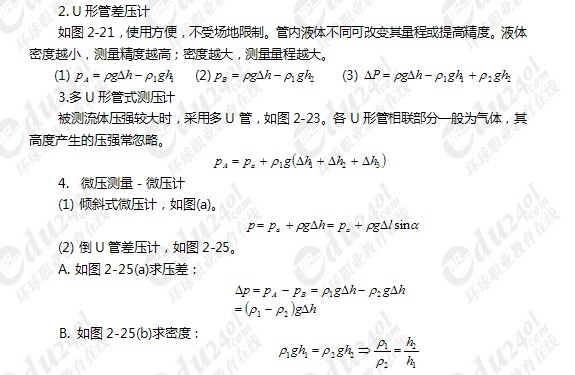 環(huán)保工程師:(流體力學(xué))流體靜力學(xué)基本方程的應(yīng)用(3)