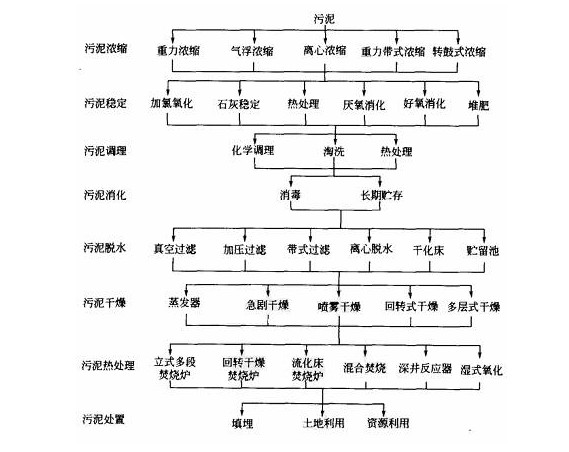污泥的處理和處置是兩個不同的概念。污泥處理是對污泥進(jìn)行穩(wěn)定化、減量化和無害化處理的過程,一般包括濃縮(調(diào)理)、脫水、厭氧消化、好氧消化、石灰穩(wěn)定、堆肥、干化和焚燒等。污泥處置是指處理后污泥的消納過程,處置方式有土地利用、填埋、建筑材料綜合利用等。從流程來看,污泥處理在前,處置在后。