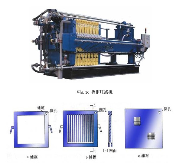 圖8.11 板框壓濾機濾框、濾板和濾布