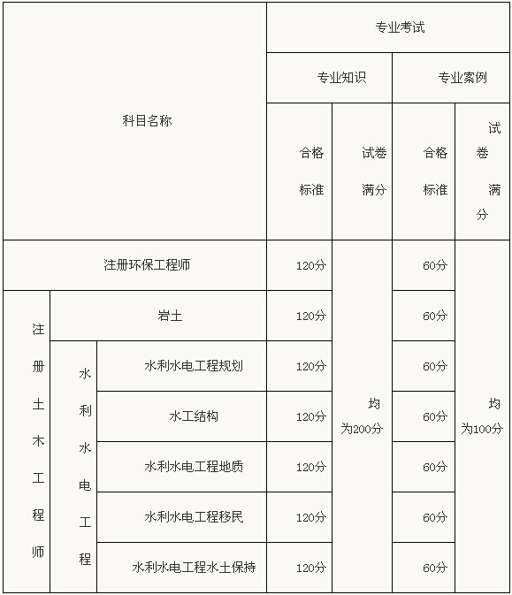 (二)注冊(cè)工程師(除一級(jí)、二級(jí)注冊(cè)結(jié)構(gòu)工程師)資格的專(zhuān)業(yè)考試合格標(biāo)準(zhǔn)見(jiàn)下表: