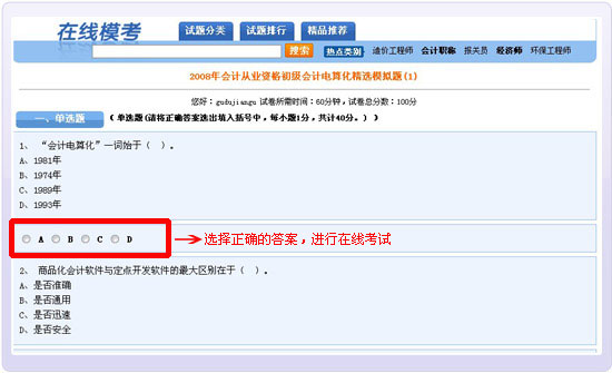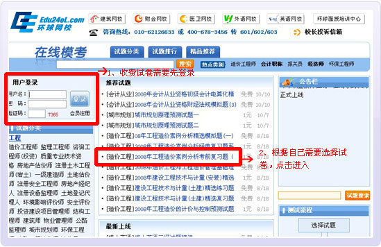 一、 選擇測(cè)試試卷(收費(fèi)試卷要先登陸在線?计脚_(tái)購買試卷)