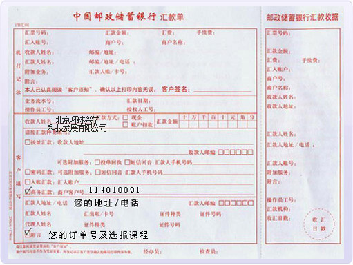 匯款單附言處請寫明:1.報名后產(chǎn)生的用戶名(或者訂單號) 2.您所選報的課程
