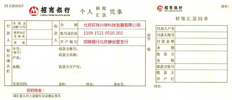 收款人姓名:北京環(huán)球興學(xué)科技發(fā)展有限公司