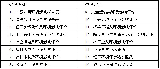 環(huán)境影響評(píng)價(jià)工程師職業(yè)資格登記類別表