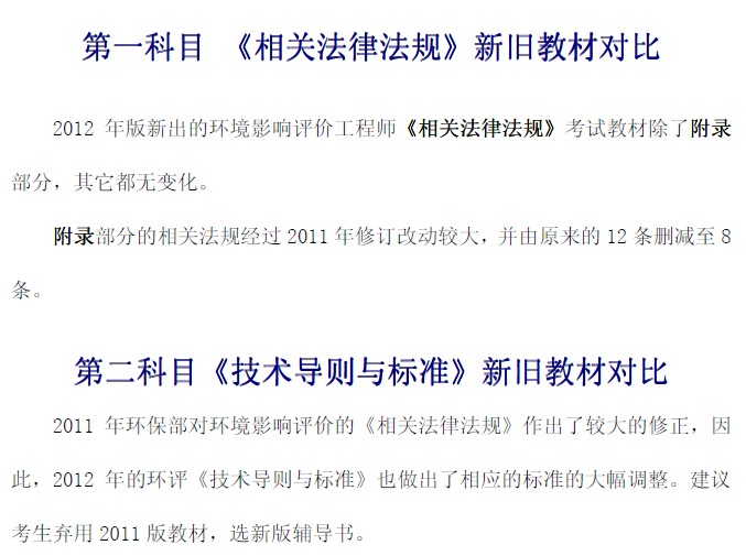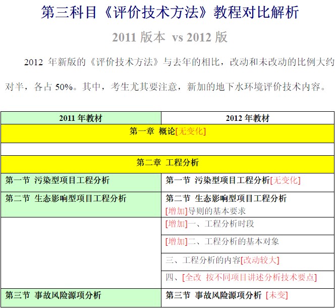 2012年《環(huán)境影響評(píng)價(jià)師》考試教材對(duì)比