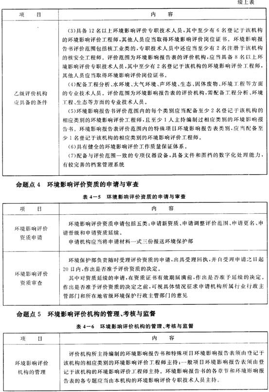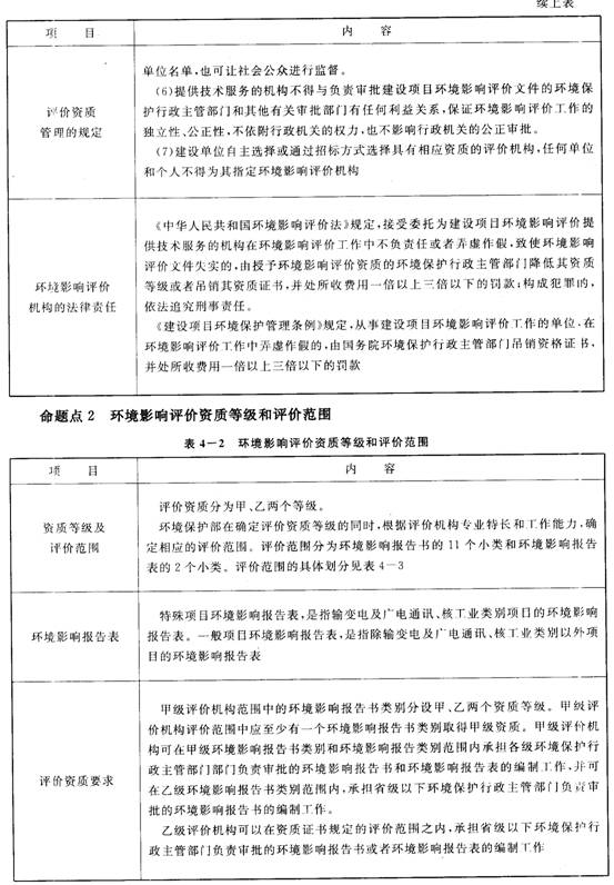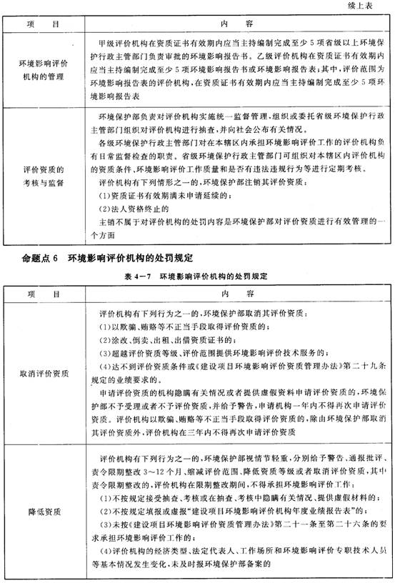 4.建設(shè)項目環(huán)境影響評價機構(gòu)的管理、考核與監(jiān)督的有關(guān)規(guī)定,是一個重要的命題點,注意把握。