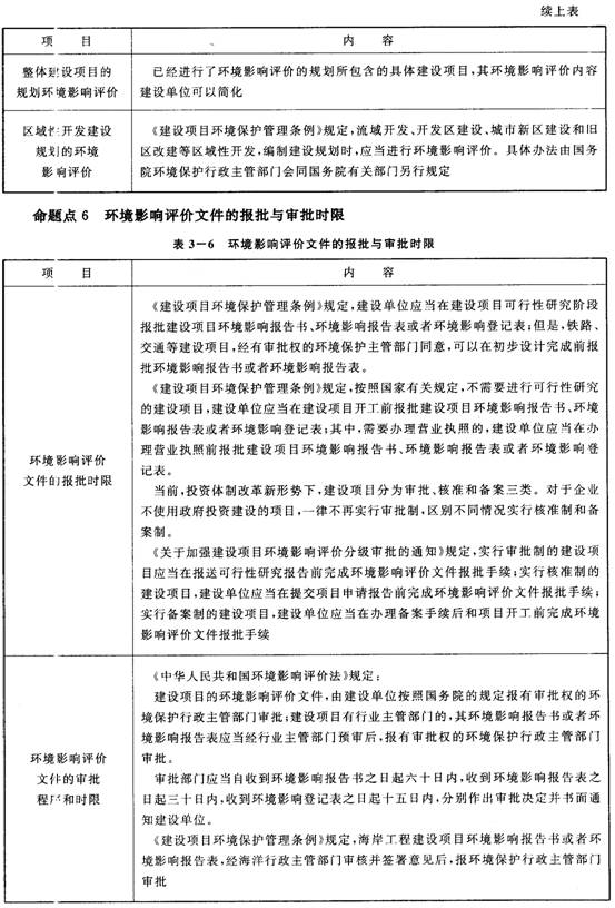 4.《建設(shè)項(xiàng)目環(huán)境保護(hù)管理?xiàng)l例》和《中華人民共和國環(huán)境影響評(píng)價(jià)法》中有關(guān)建設(shè)項(xiàng)目環(huán)境影響評(píng)價(jià)文件的報(bào)批和審批時(shí)限的規(guī)定,是一個(gè)重要的命題點(diǎn)。