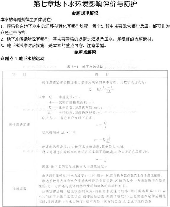 2012年環(huán)評《技術(shù)方法》第七章命題解讀-地下水影響評價與防護