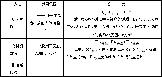 大氣污染源調(diào)查方法一般有三種:現(xiàn)場實測法、物料衡算法、排污系數(shù)法,見表4-4。