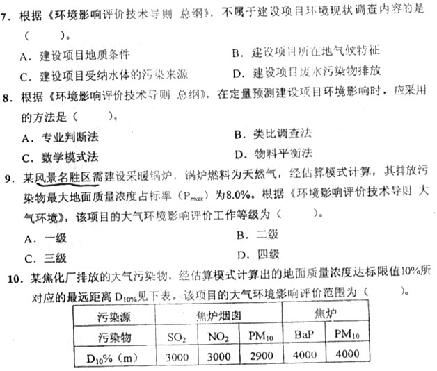 2011年環(huán)境影響評價技術(shù)導則與標準真題(二)