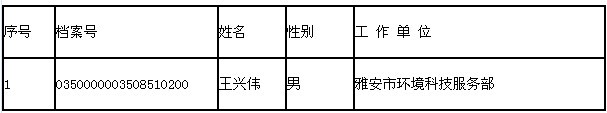 接省職稱改革工作領(lǐng)導(dǎo)小組辦公室文件(川職改辦〔2013〕46號)通知,我市參加2013年度關(guān)于公布2013年度全國環(huán)境影響評價工程師職業(yè)資格考試人員中,王興偉同志考試成績合格,其余人員成績不合格?,F(xiàn)將合格人員名單通知于后,請合格人員填寫好《專業(yè)技術(shù)人員執(zhí)業(yè)資格證書登記表》(在雅安人事考試網(wǎng)“職稱考試欄”職稱常用表格附件14中下載)一式兩份并在“所在單位人事部門審核意見”欄中蓋本單位公章,同時準備3張小二寸近期免冠紅底彩色標準照片,于2013年10月30日前交市職改辦(雅安市雨城區(qū)大眾路19號雅安市人力資源和社會保障局六樓)辦理資格證書(聯(lián)系電話:0835―2220125 )。