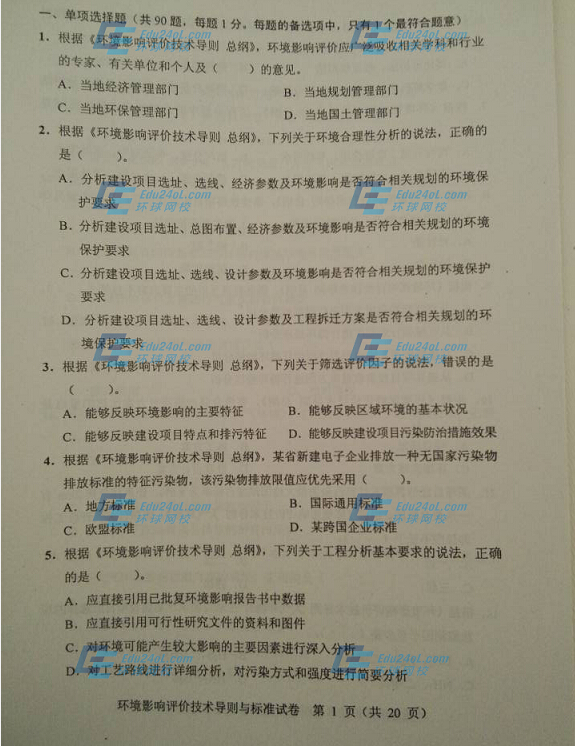 特別推薦:2014年環(huán)境影響評(píng)價(jià)師試題答案、考友交流