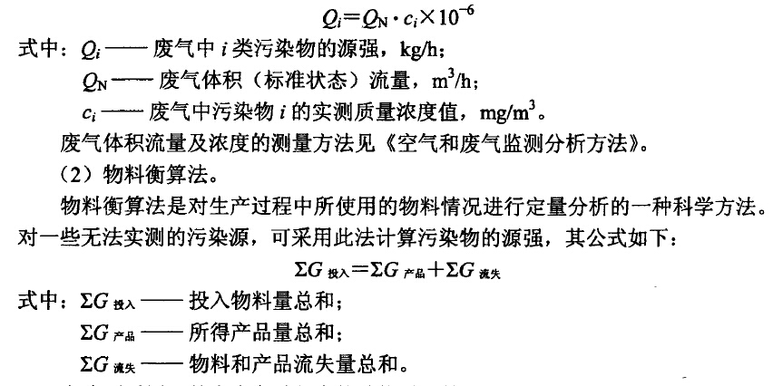 上式既適用于整個生產過程中的總物料衡算,也適用于生產過程中任何工藝過程某步驟或某一生產設備的局部衡算。同時,通過物料衡算,可明確進入環(huán)境中氣相、液相、固相的污染物的種類和數(shù)量。