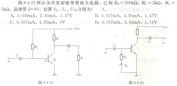 老師回復(fù)IB=(Ucc-0.7)/RB=(12-0.7)/200000=0.057mA Ic=βIB=60*0.057=3.42mA UcE=Ucc-IcRc=12-3.42*10-3*3*103=1.74V