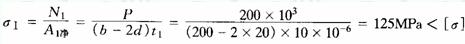 畫(huà)出左邊主板的受力圖和軸力圖如圖(c)所示。校核I—I、Ⅱ—Ⅱ截面的抗拉強(qiáng)度。